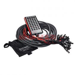 В панель коммутационного блока встроены 20 гнездовых 3-полюсных разъемов типа XLR, 4 гнездовых разъема комбинированного типа (3-полюсный XLR/JACK Ø 6,3 мм) и 4 штекерных 3-полюсных разъема типа XLR. На профессиональном многожильном аудио кабеле закреплены 24 штекерных 3-полюсных разъема типа XLR и 8 гнездовых 3-полюсных разъемов типа XLR.