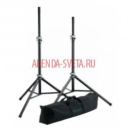 Аренда стоек для акустических систем германской фирмы K&M обычно произвоодится в комплекте: 2 штатива с чехлом (высота 1270 - 1930 мм, нагрузка до 50 кг, диаметр трубы 35 мм, цвет черный)